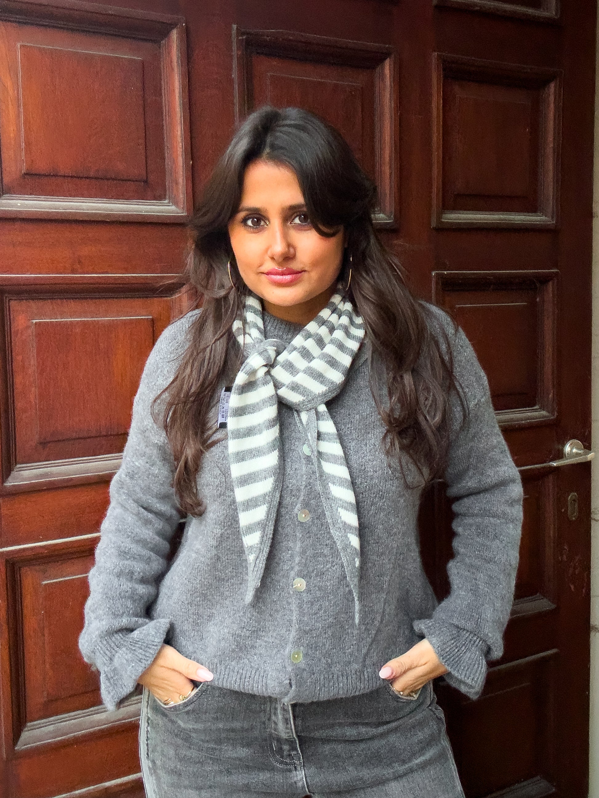 Striped triangle scarf - grijs & wit